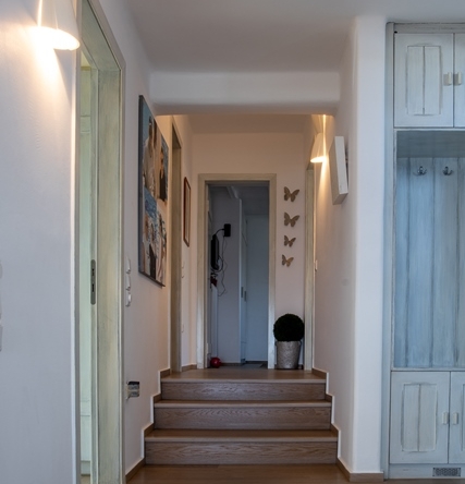 Η κατοικία αναδημιουργήθηκε το 2012 με υλικά υψηλής ποιότητας και σχεδιασμού, είναι πανταχόθεν ελεύθερη, με ανεμπόδιστη θέα και συνδυάζει αισθητική, εργονομία και λειτουργικότητα.