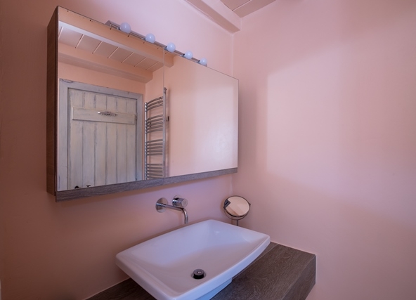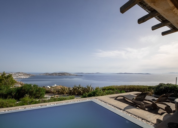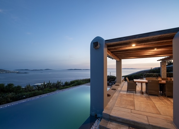 Ο προσανατολισμός της προστατεύει τις βεράντες και την πισίνα από τον βορειά.